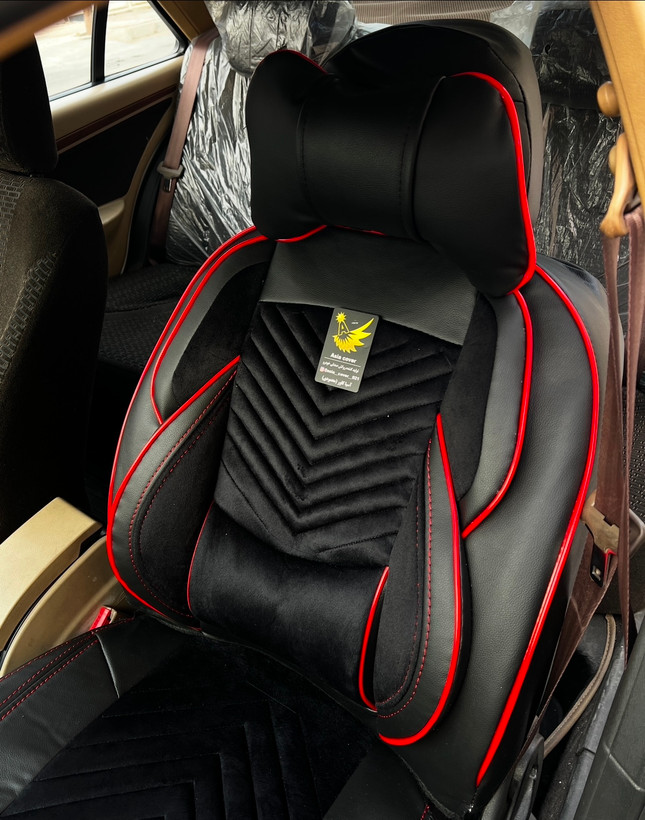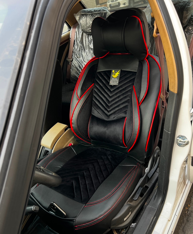 روکش صندلی وسط مخمل بغل چرم سمندسنگین طرح لاماری دارای پدطبی سروکمرvipخلبانی درجه۱باضمانت مناسب سورن پلاس