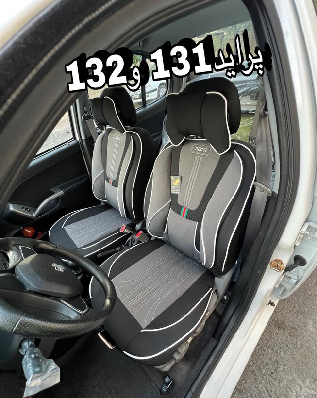 روکش صندلی پراید۱۳۱و۱۳۲برزنتی مدل گوچی فول طبی خلبانی باجای موبایلی پدطبی سروگودی کمرمتریال عالی مناسب ۱۳۱و۱۳۲
